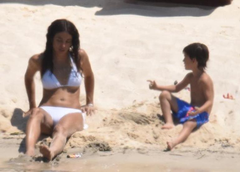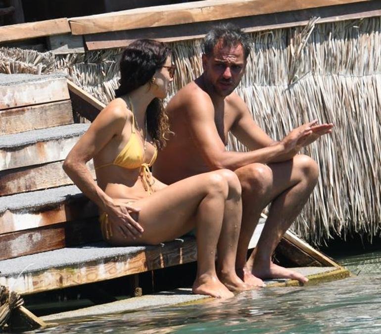 Oğullarını bıraktıktan sonra baş başa plajda vakit geçiren ikili, bir süre iskelenin merdivenlerinde sohbet ettikten sonra denize girerek kısa bir süre yüzdüler.