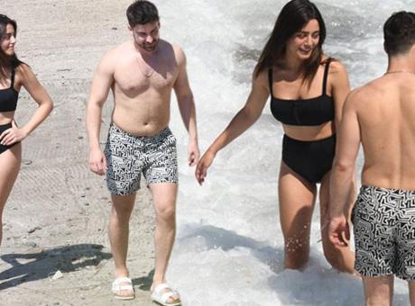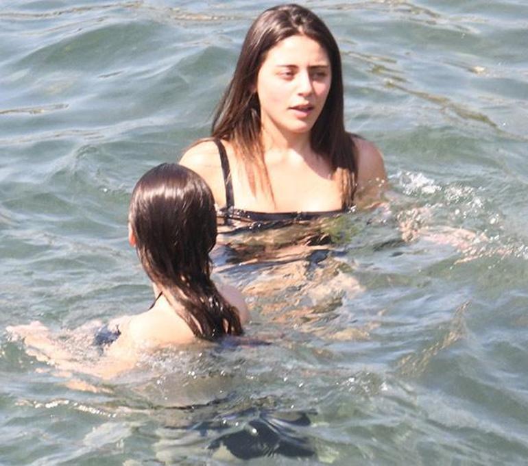 Deniz ve güneşin tadını çıkaran 24 yaşındaki güzel fit hali ile dikkat geçerken, Navruz'un ise kilo aldığı gözlendi.