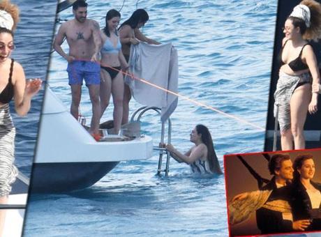 Estetik bir atlayışla kendini serin sulara bırakan Dilan Çıtak Tatlıses, denizden çıkarken teknede bulunan arkadaşlarının ellerinde havluyla beklemesi dikkat çekti.
