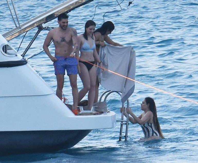 Sezonun yorgunluğunu tatilde atan ve neşelerinin bir hayli yerinde olduğu gözlenen çift, arkadaş gurubuyla deniz keyfi yapmayı ihmal etmedi.