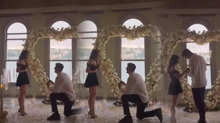 Samet Akaydın, mutluluk pozlarını paylaştığı sevgilisi Hazal Çağlar'a evlenme teklifinde bulundu.