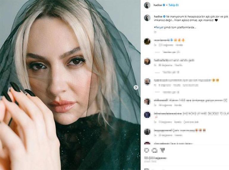 Hadise, bir diğer Instagram paylaşımında ise "Ve inanıyorum ki hesapsızca bir aşk çok zor ve çok imkansız değil. İnsan aşksız olmaz, aşk insansız!" mesajını yazdı.