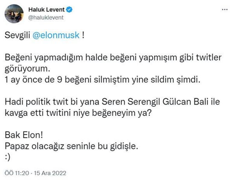 Yaşananların sosyal medyada gündem olmasının ardından, konuyla ilgili bir paylaşım da ünlü şarkıcı Haluk Levent'ten geldi. 6.2 milyon takipçisi bulunan Twitter hesabından bir yazı yazarak; sosyal medya platformunun yeni sahibi Elon Musk'a şu sözlerle seslendi: