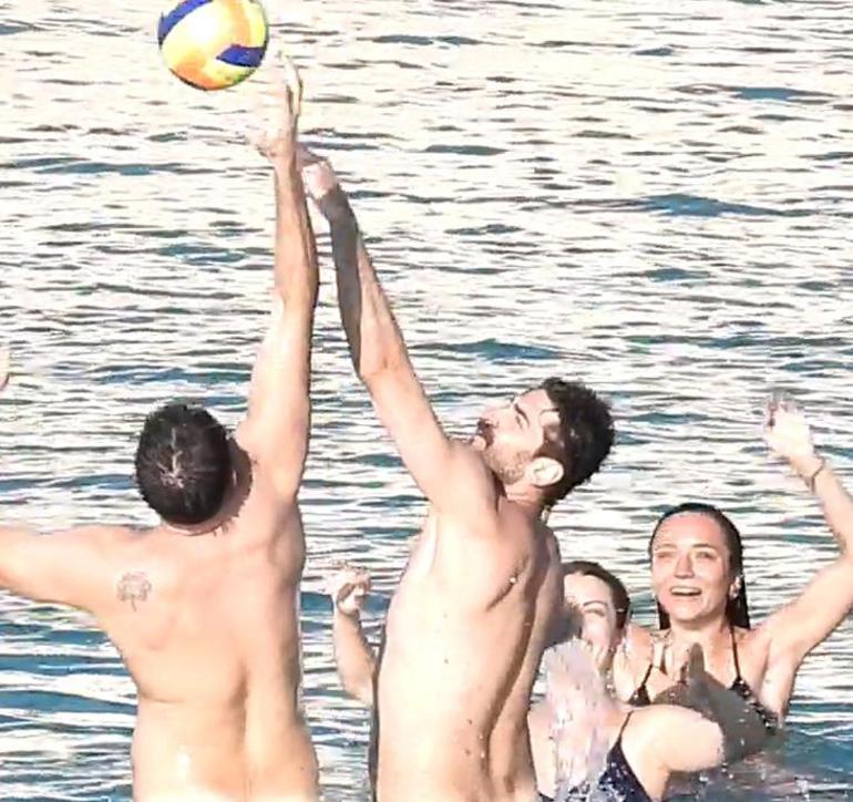 Sak, sevgilisi Korkmaz'a sarılarak öptü. İkili, suyun içinde voleybol oynadı. Çift, daha sonra basketbol antrenmanı yaparak uzun süre denizde kaldı. Sak ile arkadaşları kendilerini çeken gazetecilere deniz içerisinde durup durup baktılar.