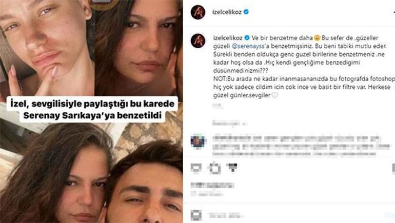 Serenay Sarıkaya'ya benzetilen İzel, Instagram hesabından açıklama yapıp, söz konusu fotoğrafa sadece basit bir filtre uygulandığını vurguladı.