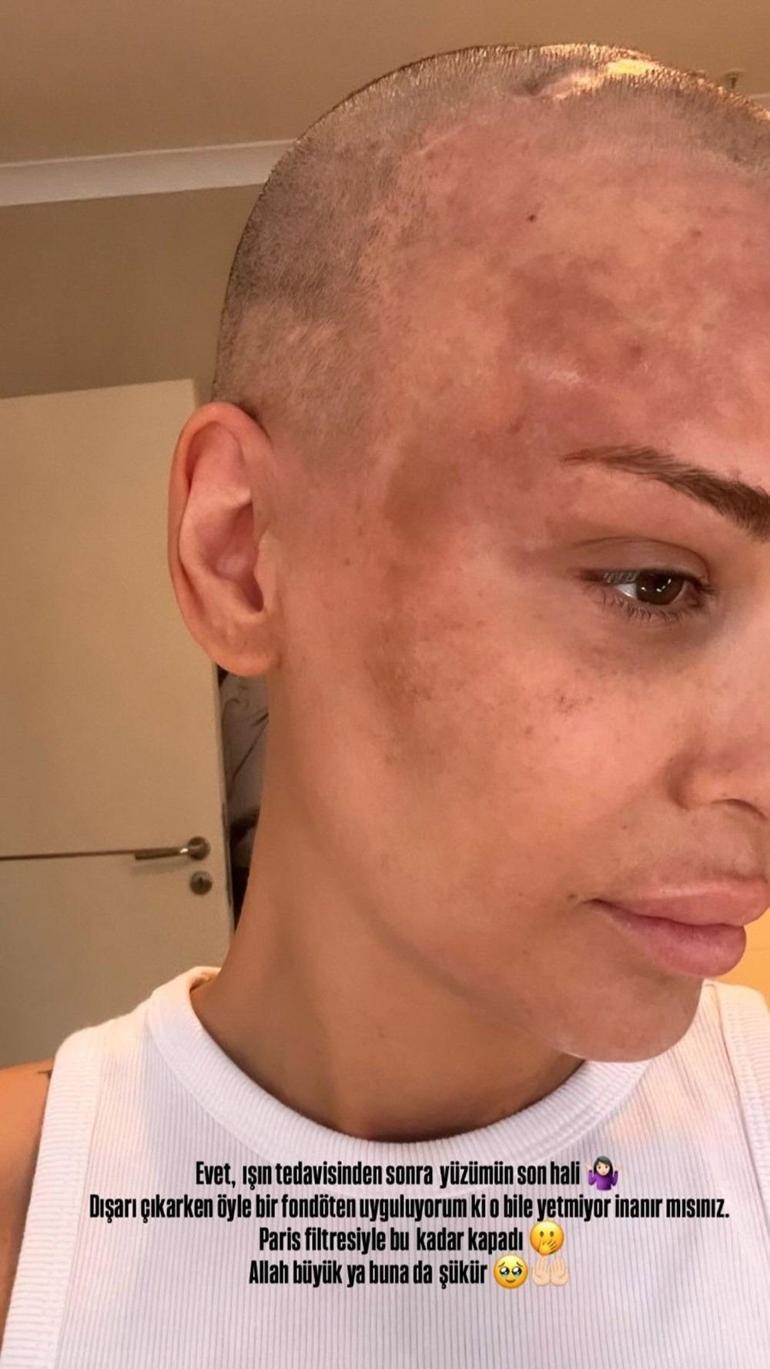 Işın tedavisinden sonra çekilen bir karesini sosyal medya sayfasının hikayeler bölümünden paylaşan şarkıcı, şu ifadeleri kullandı: