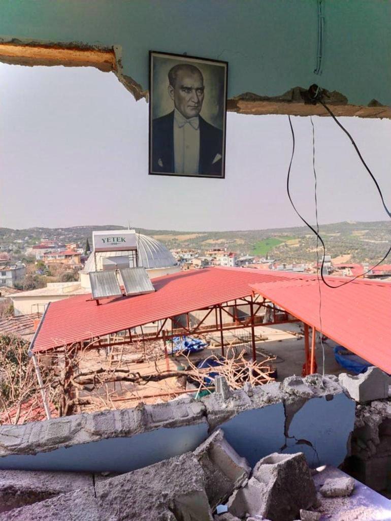 Ünlü şarkıcının paylaşımında, Mustafa Kemal Atatürk'e ait bir fotoğrafın depremde hasar görmeden duvara asılı bir şekilde kaldığı görülüyor.