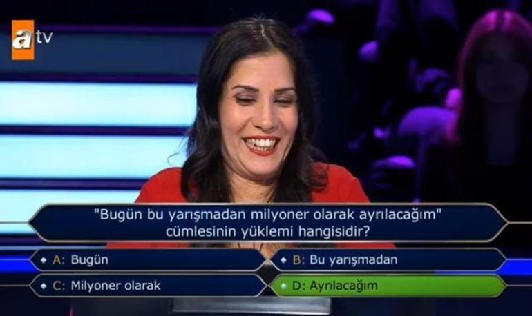 'D- Ayrılacağım' şıkkını seçen yarışmacı, ilk soruyu başarıyla cevaplayarak ikinci soruya geçti.