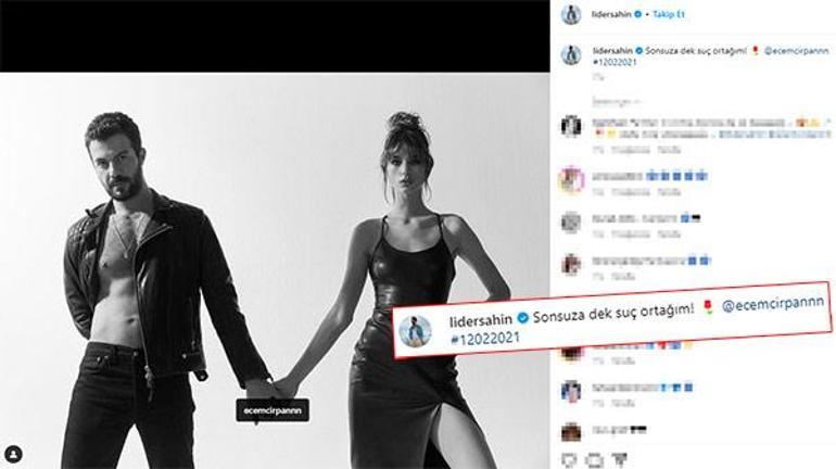 Instagram hesabından Ecem Çırpan ile el ele bir pozunu yayıylayan Lider Şahin, '12 Şubat 2021' etiketi ve gül emojisi ile birlikte "Sonsuza dek suç ortağım" mesajını yazdı.