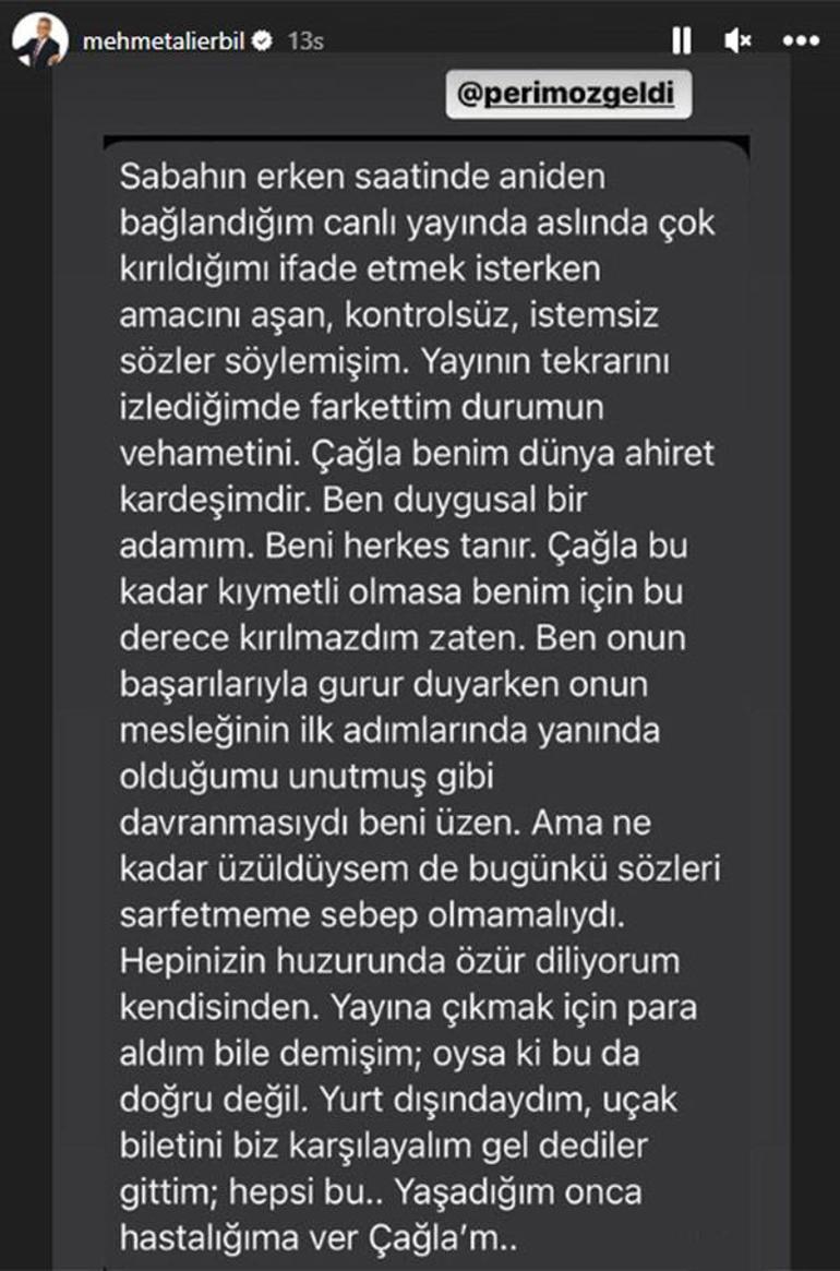 Instagram hasabından yeni bir açıklama yayınlayan Erbil, "Hepinizin huzurunda kendisinden özür diliyorum. Yaşadığım onca hastalığa ver Çağla'm" dedi.