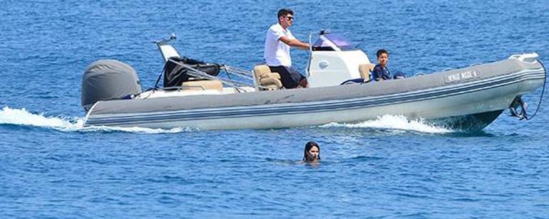 Ünlü isim, önceki gün öğle saatlerinde otelin iskelesinde boy gösterdi. İskeleden atlayıp kendini Ege'nin serin sularına bırakan Cavadzade, otelin açıklarında bulunan dubalara kadar yüzdü.