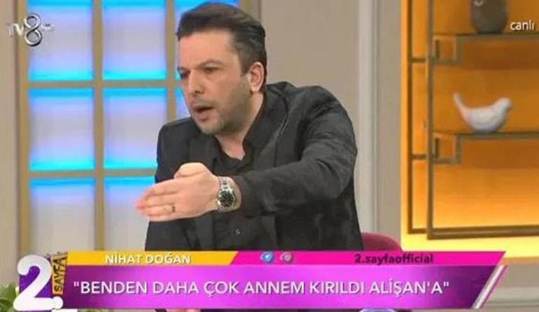 Bir dönem Alişan ile yedikleri içtikleri ayrı gitmeyen Nihat Doğan, "Ablam vefat etti, gelmedi. Aradı, 'Konum atar mısın?' dedi. Konum attık, herkes geldi Alişan gelmedi. O zaman çok kalbim kırılmıştı. Annem de 'Sen onun her şeyine gittin, o niye gelmedi?' dedi. Bazen aşırı tevazu ahmaktan nasihat almaya benziyor. Büyükler 'Bir şey yaparken üçlemeyin' der. Biz 3'ledik, 4'ledik, 13'ledik hatta. İki defa gittin, o sana gelmezse üçleme. İki defa aradın, o seni aramazsa üçleme. Allah herkesin çarşısına göre pazar versin. Sanki ölüm hiç kapımıza gelmeyecekmiş gibi bir güç zehirlenmesi içine giriyor insanlar" ifadelerini kullandı.