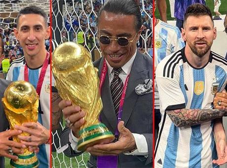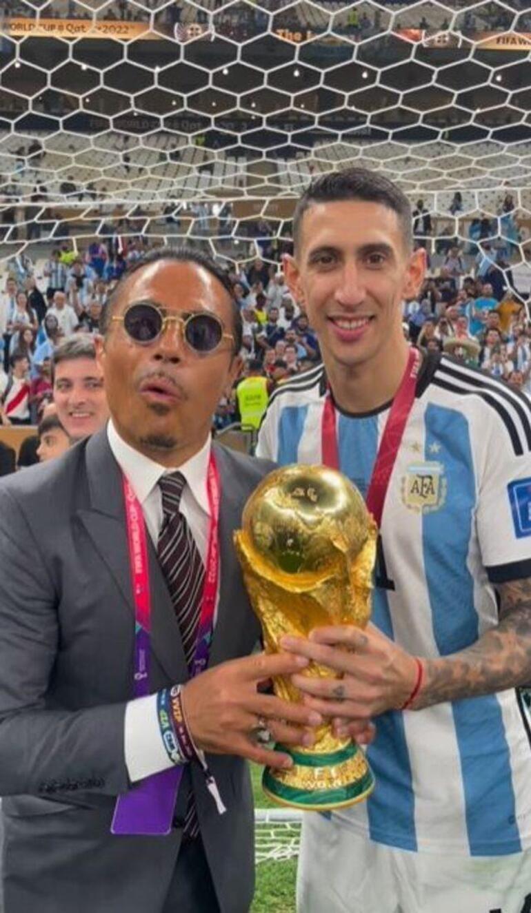 Nusret Gökçe, Katar'da sahaya indi! Angel di Maria ile Dünya Kupası'yla poz verdi