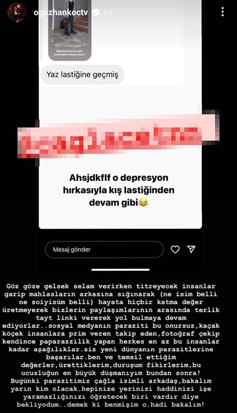 Oğuzhan Koç, son olarak Instagram'da bir fenomenşn ayakkabılarını eleştirmesi üzerine çılgına dönüp, zehir zemberek sözler sarf etti.