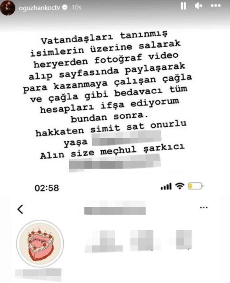 Oğuzhan Koç'un ifşa ettiği hesabın sahibinden ülü şarkıcıya cevap geldi.