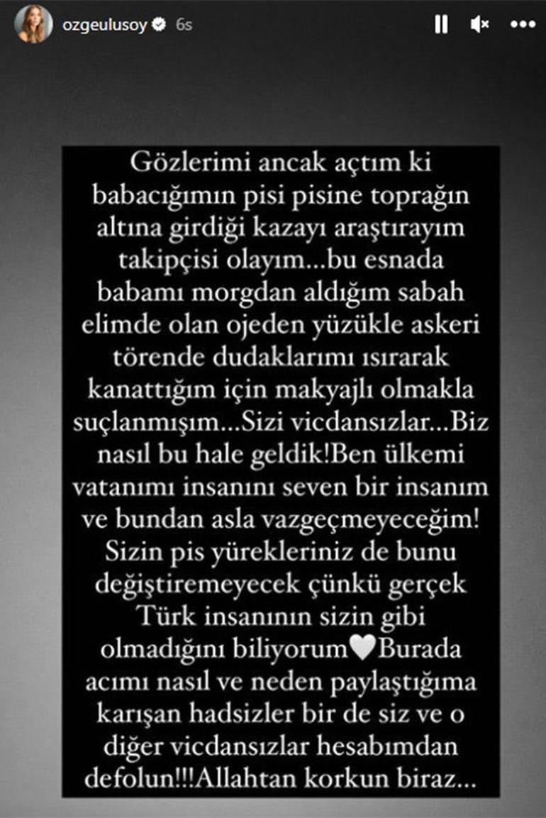 Tarifsiz bir acı yaşayan Özge Ulusoy, babasının cenaze törenine ojeli ve makyajlı şekilde katıldığı yönündeki eleştirilere isyan etti.
