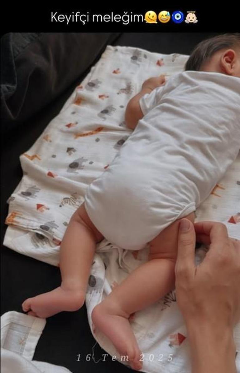 Çiçeği burnunda anne, bebeği Pamir'in yeni fotoğrafını 'Keyifçi meleğim' notuyla Instagram'dan sevenlerinin beğenisine sundu.