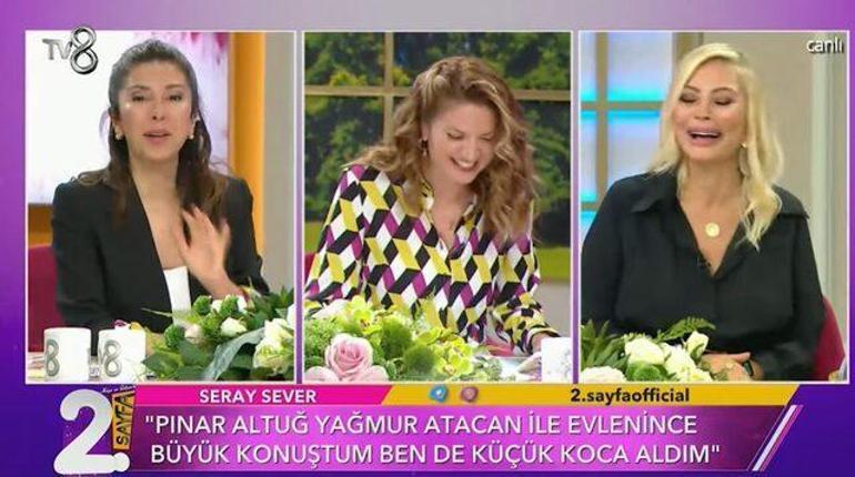 Seray Sever, bugün '2. Sayfa' programına konuk oldu. Ünlü çiftlerin aralarındaki yaş farklarının konuşulduğu programda Seray Sever, Pınar Altuğ ve Yağmur Atacan'ın evliliği hakkında yıllar önce yaptığı espriyi anlattı.