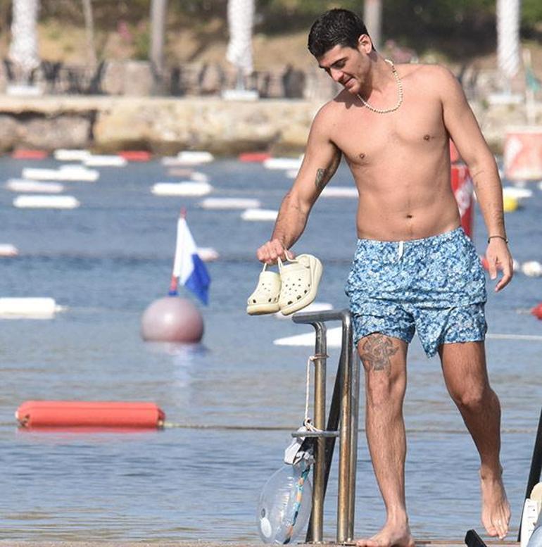 Ortakent'te yaklaşık dört saat durdukları beach'te bol bol sohbet eden Erbil ve Poyraz, gün sonuna doğru denize girdi.