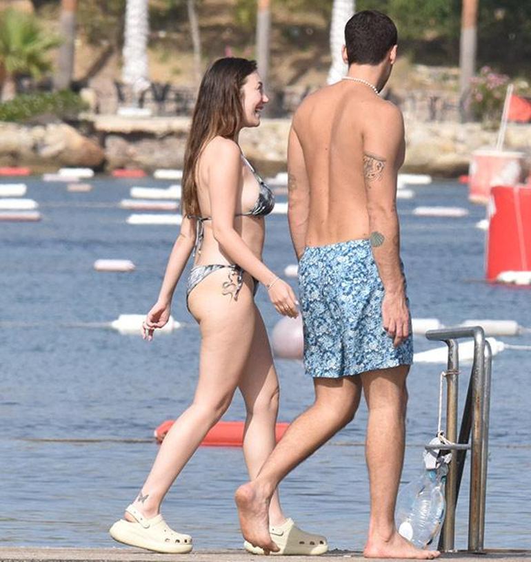 Yasmin Erbil, suya girer girmez sevgilisinin yanına giderek, sımsıkı sarıldığı Poyraz'ı dudağından öptü. Bodrum'da romantik anlar yaşayan sevgililerin, tatide keyifleri bir hayli yerindeydi.