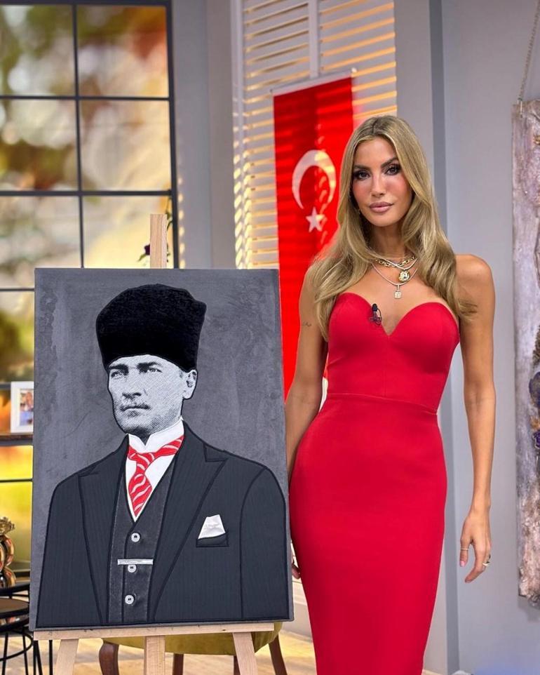"Ah kalbim. Dün gece üçe kadar bu fotoğraf için uyumadım. Eşim kusura bakmasın. Evlatlarım, sizleri de çok seviyorum ama tüm fotoğraflar bir tarafa, bu bir tarafa. Yalan da olsa çok güzel, hayal de olsa çok güzel. Cumhuriyetimizin yüzüncü yılında bu da bana bayram hediyesi olsun. Sizce nasıl olmuş?"