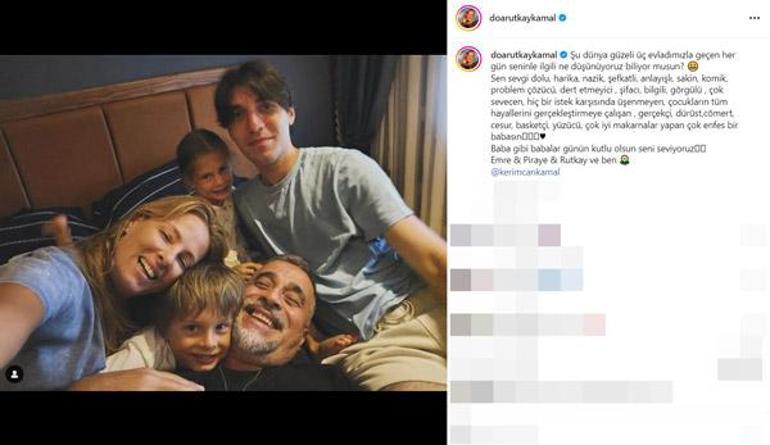 "Şu dünya güzeli üç evladımızla geçen her gün seninle ilgili ne düşünüyoruz biliyor musun? Sen sevgi dolu, harika, nazik, şefkatli, anlayışlı, sakin, komik, problem çözücü, dert etmeyici, şifacı, bilgili, görgülü, çok sevecen, hiç bir istek karşısında üşenmeyen, çocukların tüm hayallerini gerçekleştirmeye çalışan, gerçekçi, dürüst, cömert, cesur, basketçi, yüzücü, çok iyi makarnalar yapan çok enfes bir babasın. Baba gibi Babalar Günü'n kutlu olsun, seni seviyoruz."