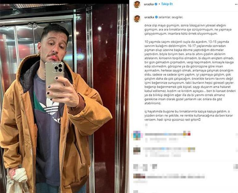 Uraz Kaygılaroğlu, 2.8 milyon takipçisinin bulunduğu Instagram hesabından el tırnaklarında siyah oje olan bir fotoğrafını paylaştı. 2019 yılında boşandığı Melis İşiten'le evliliğinden dünyaya gelen kızı Ada'nın isteği üzerine daha önce de oje süren ünlü oyuncu, "Hakaret kabul edilemez. Kızdım ve kırıldım" diyerek, tepkisini dile getirdi.