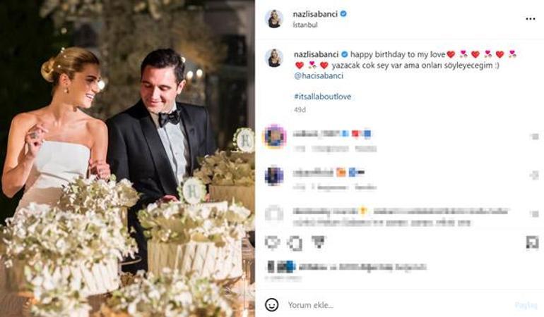 Zaman zaman sosyal medya hesabından paylaştığı karnı burnunda pozlarıyla gündeme gelen sosyetik güzel, son olarak 36'ncı yaşına basan eşinin doğum gününü kutladı. Düğünden bir karelerini yayınlayan Nazlı Sabancı, paylaşımına ''Doğum günün kutlu olsun aşkım. Yazacak çok şey var ama onları söyleyeceğim'' notunu düştü. Ünlü ismin romantik paylaşımına takipçilerinden beğeni ve yorum yağdı.
