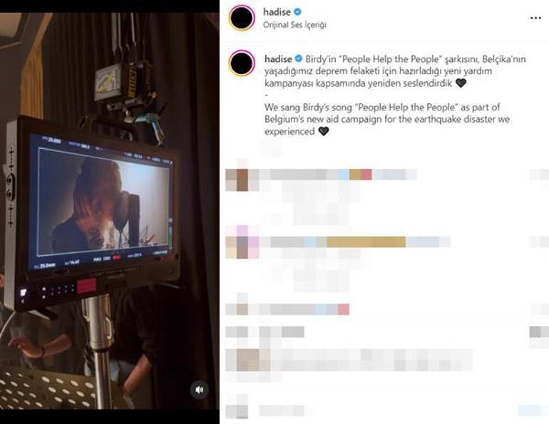 37 yaşındaki şarkıcı, son olarak Birdy'nin parçasını seslendirdiği anların bir videosunu Instagram sayfasından paylaştı. Hadise, kısa sürede binlerce beğeni alan videosuna şu mesajı yazdı: