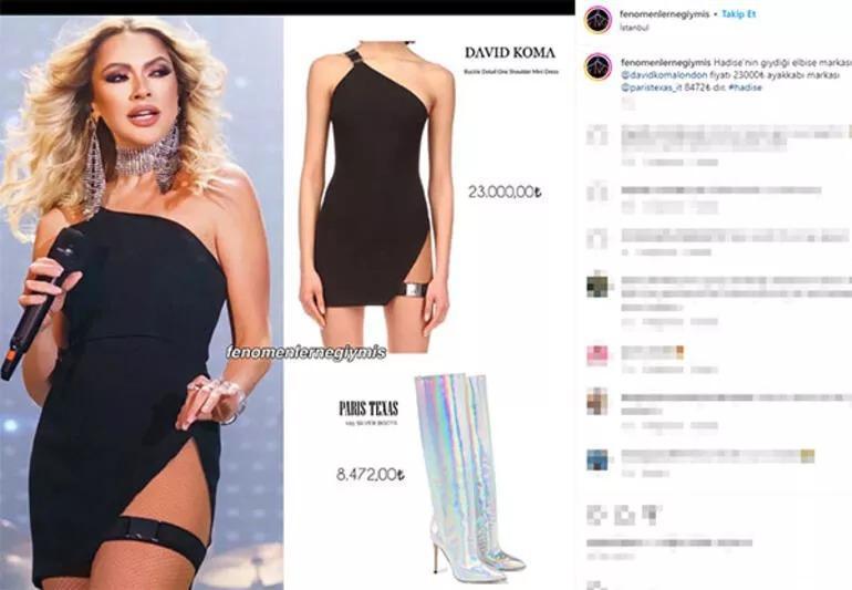 Instagram'da ünlü isimlerin stilini inceleyen Fenomenler Ne Giymiş hesabı, Hadise'nin hayranlarından tam not alan iddialı konser stilini mercek altına almıştı. Buna göre; güzel şarkıcının giydiği derin bacak dekolteli elbisenin fiyatının 23 bin TL, hologram efektli çizmesinin değerinin ise 8 bin 472 TL olduğu öğrenilmişti.