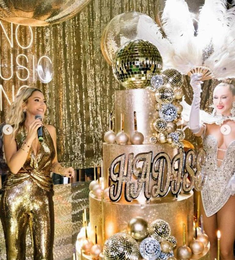 Hadise doğum günü için ışıltılı kıyafetler tercih etmeyi ihmal etmedi. Instagram hesabından paylaşım yapan Hadise binlerce beğeni aldı. Paylaşımda Hadise'nin devasa pastası dikkatleri çekti. İşte doğum günü partisinden bazı kareler: