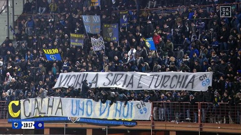 Deplasmanda olmalarına rağmen Inter taraftarları milli futbolcumuz Hakan Çalhanoğlu’na destek vermek için pankart açtı. “Türkiye ve Suriye’nin yanındayız” pankartıyla beraber Hakan Çalhanoğlu için de acını paylaşıyoruz anlamında bir pankart daha yer aldı.