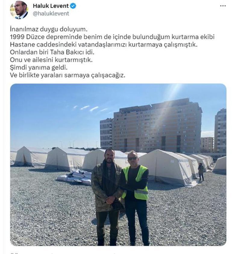 Levent, başka bir Tweet'inde ise 1999'da yaşanan Düzce depreminde içerisinde bulunduğu ekiple birlikte kurtardıkları Taha Bakıcı'dan bahsetti:
