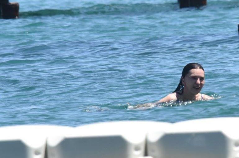 Yarım saat sonra da Hande Ataizi'nin sevgilisi Dinç Aydoğdu plaja geldi. İskelede yürüyerek merdivenlerin başına gitti. Hande Ataizi'ye seslenerek, "Birlikte denize girelim" dedi. Sevgilisinin isteğini kırmayan Ataizi Dinç Aydoğdu'nun yanına gitti.