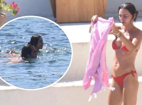 Ataizi, denizden çıkar çıkmaz koşarak havlusunu aldı. Ünlü çift daha sonra şezlonglarına doğru giderek gözlerden kayboldu.