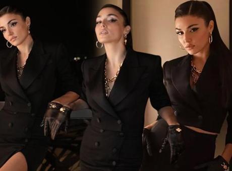 2 yıldır Hakan Sabancı ile aşk yaşayan ünlü oyuncunun tarzı sevenlerinden tam not aldı. Siyah bir etek ve ceket takımı giyen Erçel, eldiven ve takılarıyla da kombinini tamamladı.