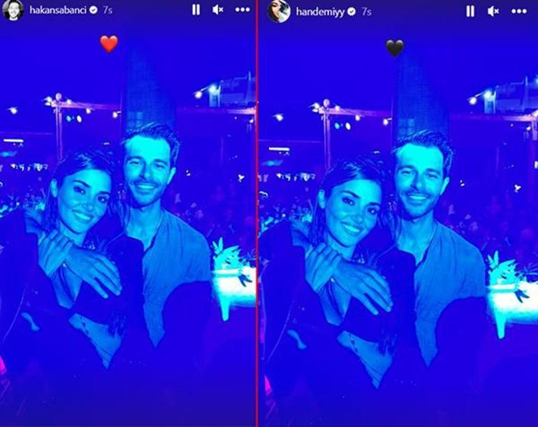 Erçel, sevgilisinin kolunu boynuna doladığı bir fotoğrafı 30.8 milyon takipçisi bulunan Instagram sayfasının hikayeler bölümünden siyah kalp emojisi ile yayınlarken; Sabancı ise aynı kareyi kırmızı kalp emojisiyle paylaştı.