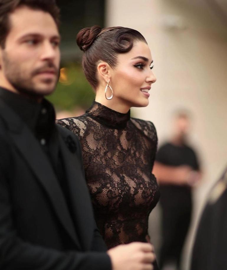 Elle Style Awards Gecesi'ne Hakan Sabancı ile katılan Hande Erçel, siyah dantel ve transparan kenarlara sahip bir elbiseyle geceye damga vurdu. Sabancı da sevgilisine uyumlu olacak bir siyah takım giydi.