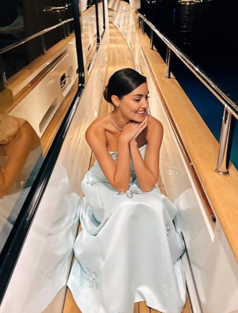 Instagram hesabından teknede verdiği pozları paylaşan güzel oyuncu, kısa sürede binlerce beğeni topladı. Şıklığıyla bir kez daha göz dolduran Hande Erçel’in elbisesi sosyal medyada büyük ilgi gördü.