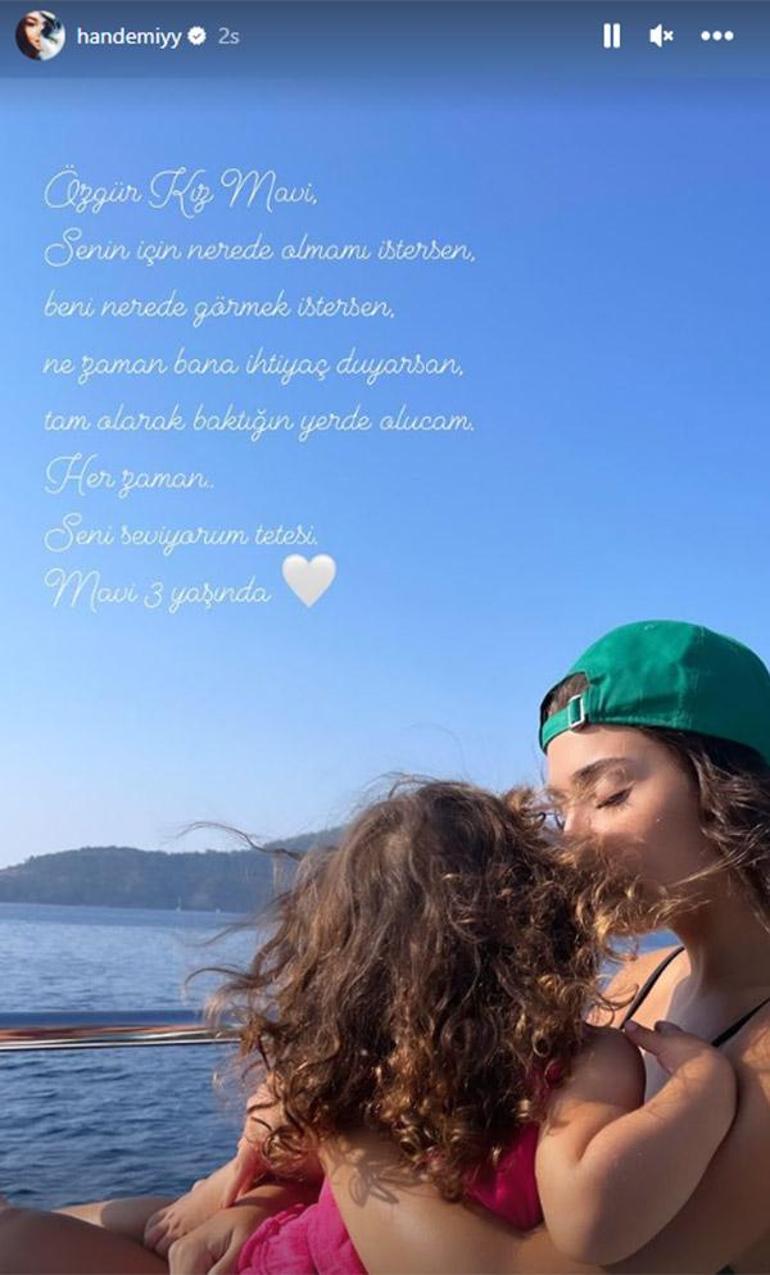 Ünlü isim, Aylin Mavi ile pozuna kalp emojisiyle birlikte, "Özgür kız Mavi senin için nerede olmamı istersen, beni nerede görmek istersen, ne zaman bana ihtiyaç duyarsan tam olarak baktığın yerde olacağım. Her zaman. Seni seviyorum tetesi. Mavi üç yaşında" notunu düştü.