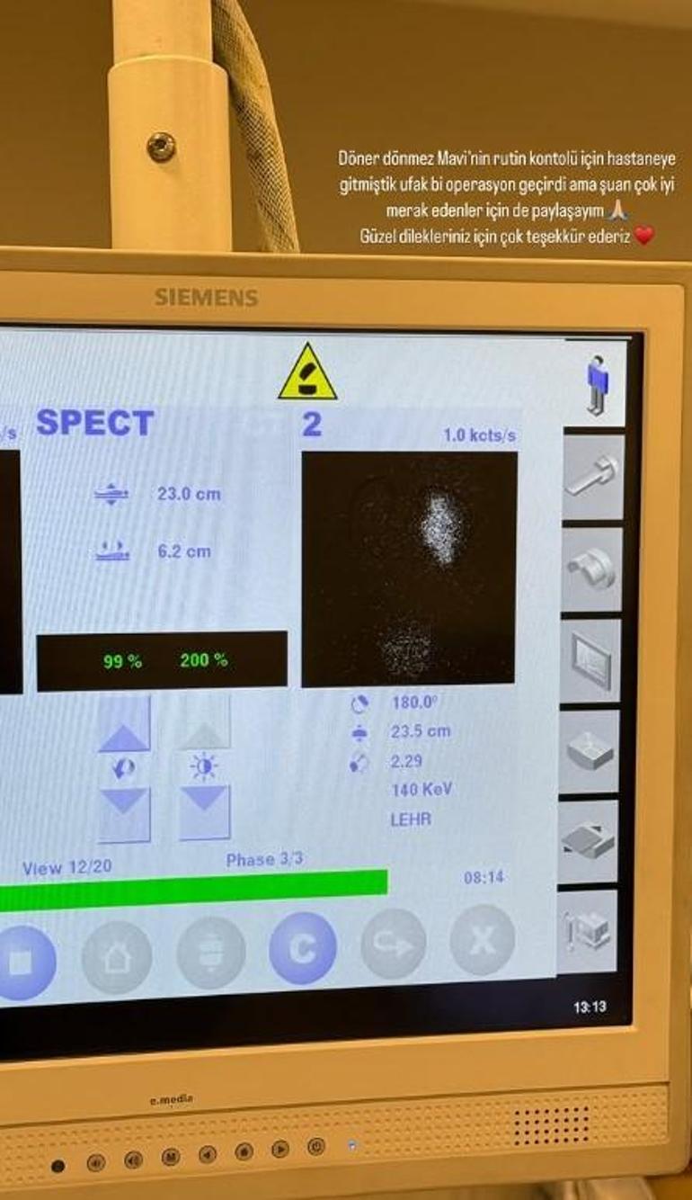 'Döner dönmez Mavi'nin rutin kontrolü için hastaneye gitmiştik. Ufak bir operasyon geçirdi ama şu an çok iyi. Merak edenler için de paylaşayım. Güzel dilekleriniz için çok teşekkür ederiz.'