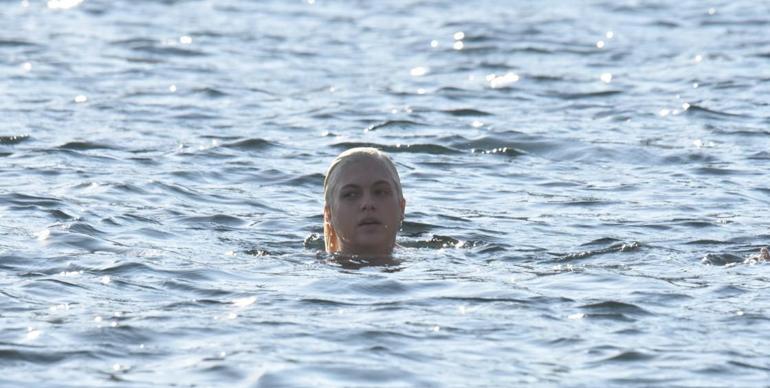 Güzel oyuncu, önceki gün Bodrum Gümüşlük'te görüntülendi. Oyuncu gün sonuna doğru denize girerek serinledi.