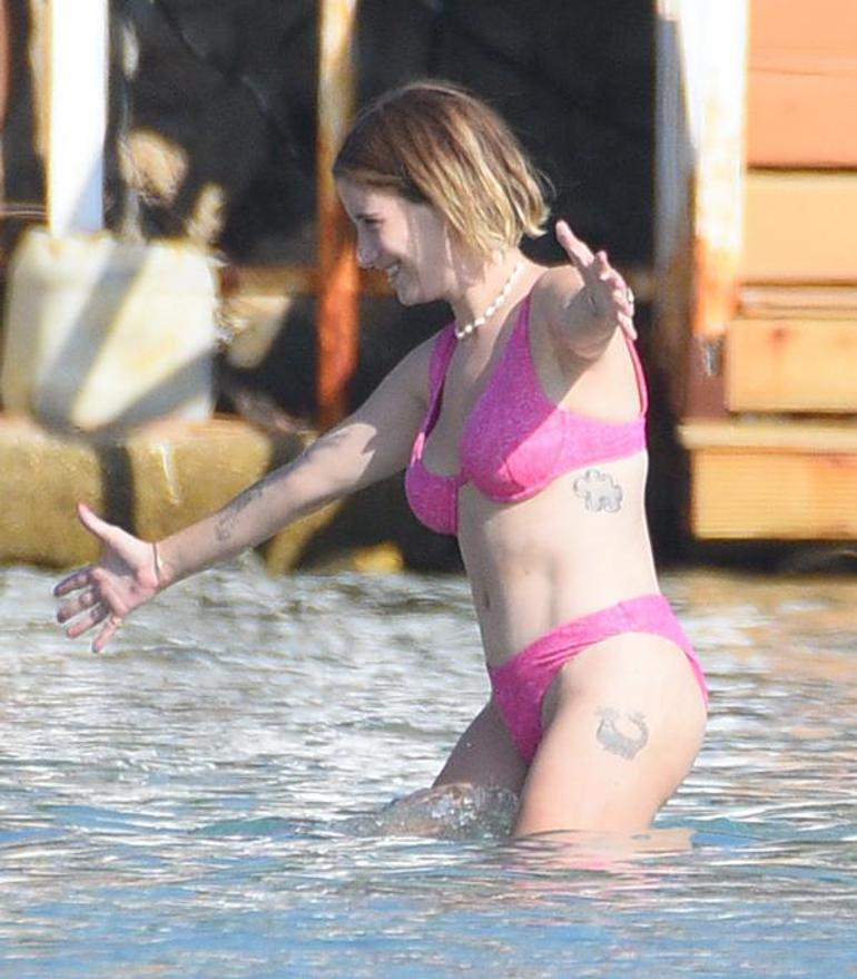 Yaz sezonunu Çeşme’de çocuklarıyla birlikte geçiren ve genelde Çiftlikköy taraflarını tercih eden Hazal Kaya, geçtiğimiz Alaçatı’da keşfettiği bir plajda denize girdi.
