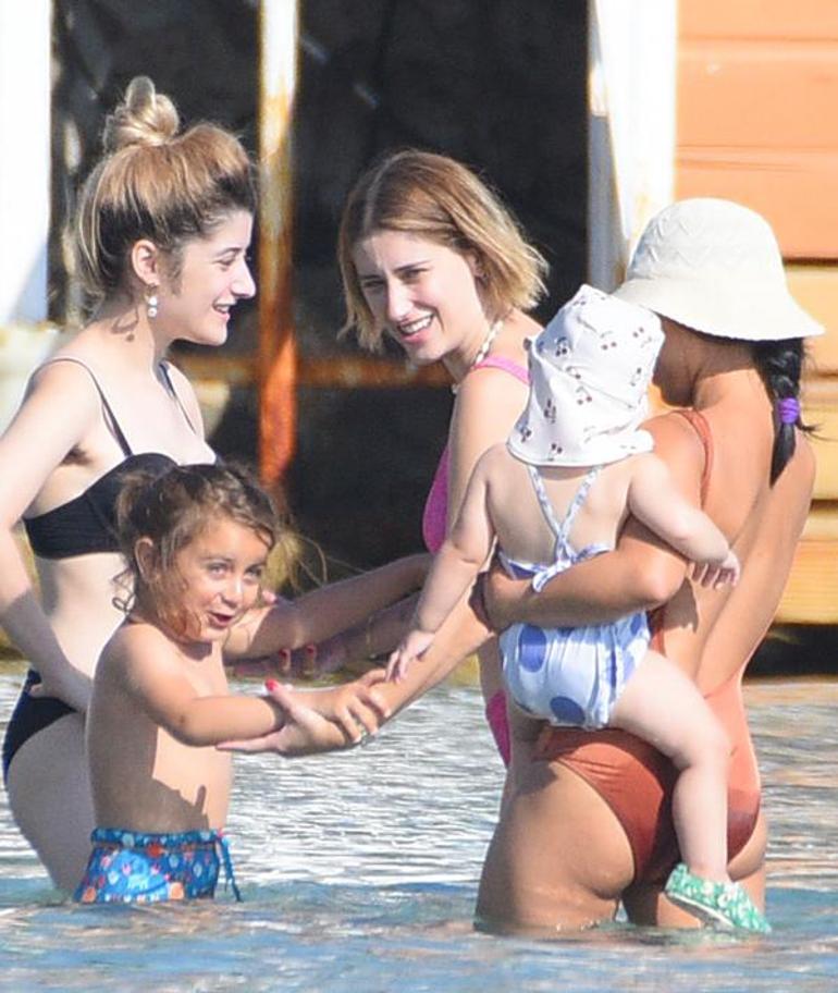 Oğlu Fikret Ali ve kızı Leyla Süreyya ile görüntülenen ünlü oyuncunun eşi Ali Atay’ın da orada olduğu ancak gün boyunca mekanın içinde kalıp suya girmediği görüldü.