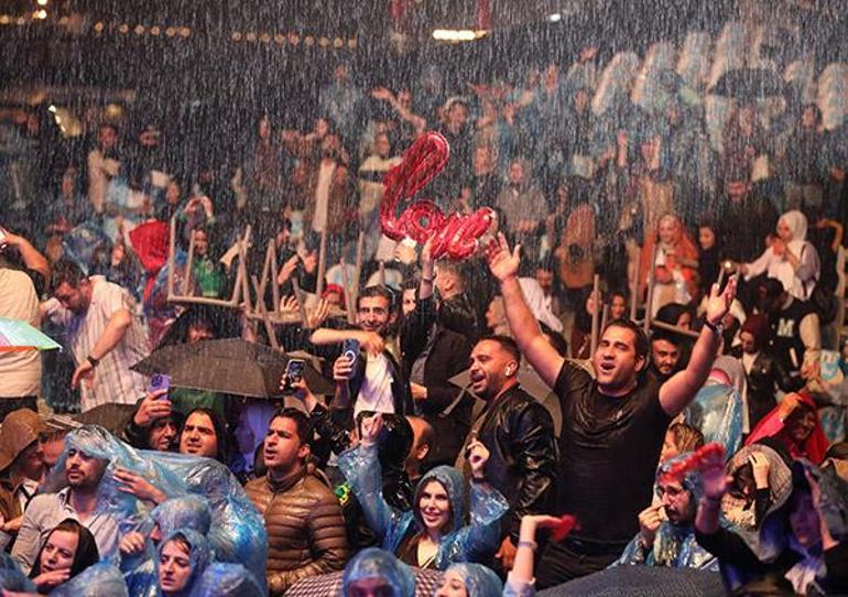Konser sırasında başlayan yağmur ise sanatçının hayranlarını durduramadı. Alanı terk etmeyen binlerce müziksever yağmurluklarla, şemsiyelerle İbrahim Tatlıses’in şarkılarına eşlik ederek eğlenmeye devam etti.