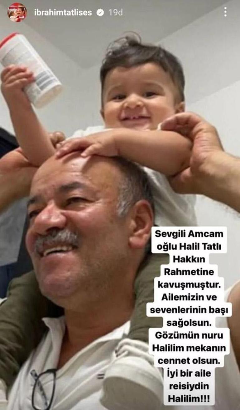 İbrahim Tatlıses, aldığı acı haberle yıkıldı. Amcasının oğlu Halil Tatlı'nın bir fotoğrafını paylaşan 70 yaşındaki sanatçı, sosyal medya gönderisinde şu ifadelere yer verdi: