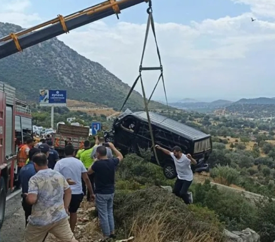 Çarpışmanın şiddetiyle Yılmaz'ın kullandığı minibüs, arkadan gelen Mehmet Ali Timurhan'ın kullandığı 48 BD 731 plakalı otomobilin ön kısmına çarparken, kamyon ve minibüs uçuruma düştü. Kazada minibüste bulunan İbrahim Tatlıses, polis memuru Alper Arıcıoğlu (30), Metin Cantimur (72), şoför Uğur Yılmaz, Mevlüt Aybı (38), Berka Gülmez (22), kamyon şoförü Gültekin Gülsoy ve otomobildeki Taner Şanlı (78) yaralandı. Çevredekilerin 112 Acil Çağrı Merkezi'ne ihbarı üzerine bölgeye sağlık, itfaiye ve polis ekipleri sevk edildi.