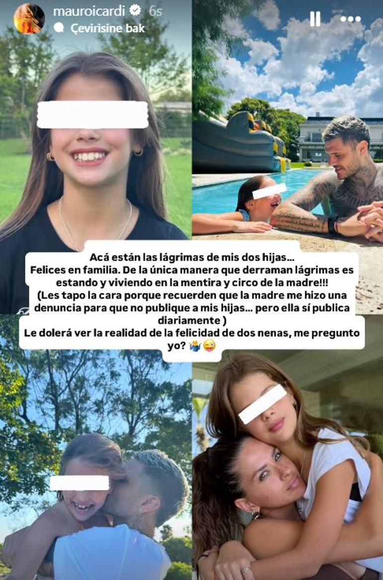 Icardi, paylaşımının sonunda kızlarının gözyaşlarını hatırlatarak, “İşte iki kızımın gözyaşları... Mutlu bir aile. Gözyaşlarının dökülmesinin tek yolu annenin yalanında ve sirkinde olmak ve yaşamaktır! (Yüzlerini kapatıyorum çünkü annelerinin kızlarımı yayınlamamam için şikayette bulunduğunu hatırladıkları için... ama o her gün yayınlıyor)" dedi.