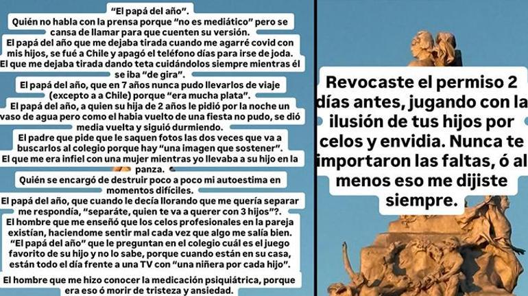 Sosyal medya hesabından uzun bir yazı paylaşan Suarez, "Kim 'medyatik değilim' deyip kendi versiyonunu yaymak için basını arar? Çocuklarımızla Kovid olduğumuzda bizi ortada bırakan, Şili'ye gidip günlerce telefonunu kapatıp eğlenen 'yılın babası' oydu. Ben çocuklara bakıp emzirirken o turneye gittiğinde beni hep yalnız bıraktı. 7 yıldır çocuklarını (Şili hariç) hiç tatile götüremedi. Çünkü çok para tutuyordu. İki yaşındaki kızımız gece bir bardak su istediğinde, partiden döndüğü için veremeyen, arkasını dönüp uyumaya devam eden 'yılın babası' da oydu. Okula çocuklarını iki kez almaya gittiğinde 'bir imajım var' diye fotoğraf çektiren bir babaydı. Ben karnımda çocuğumu taşırken başka bir kadınla beni aldattı." dedi.