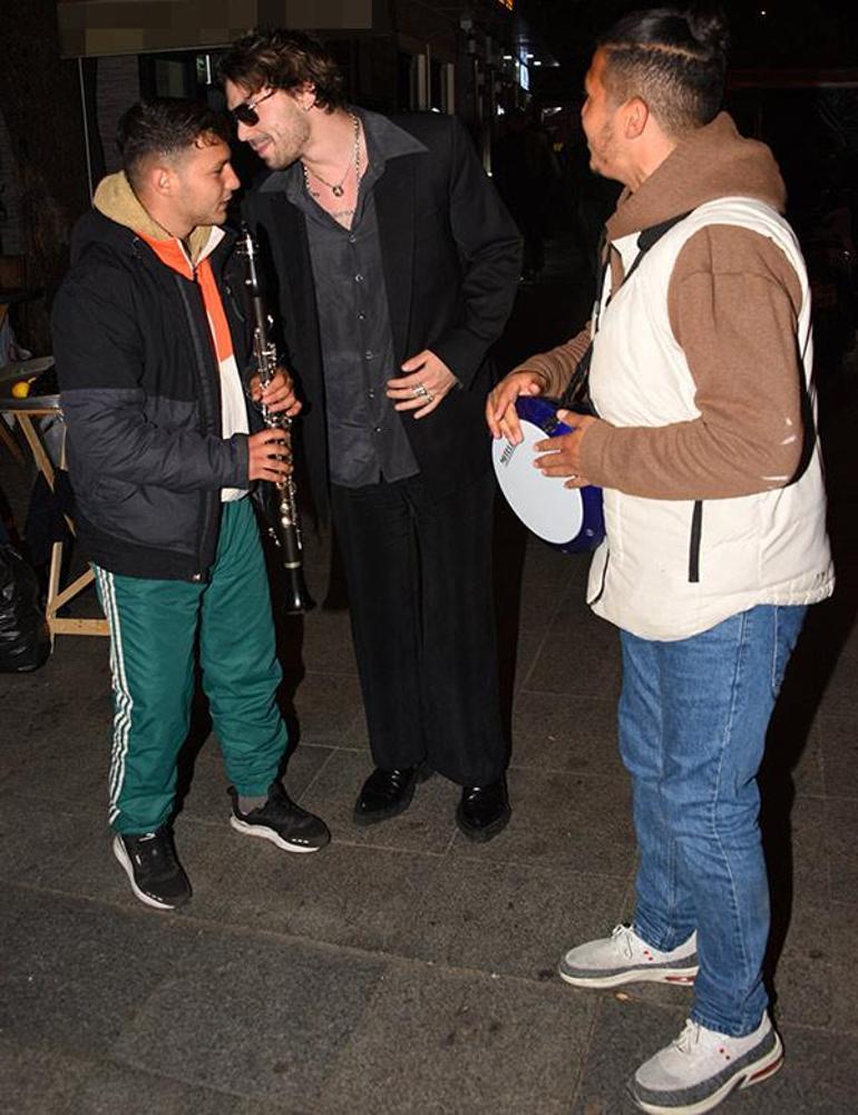 Tarık Emir Tekin, önceki gece Bebek’teydi. Basın mensuplarının görüntü aldığını fark eden sokak çalgıcıları, bir anda oyuncunun yanına gelerek, şarkılar söylediler.
